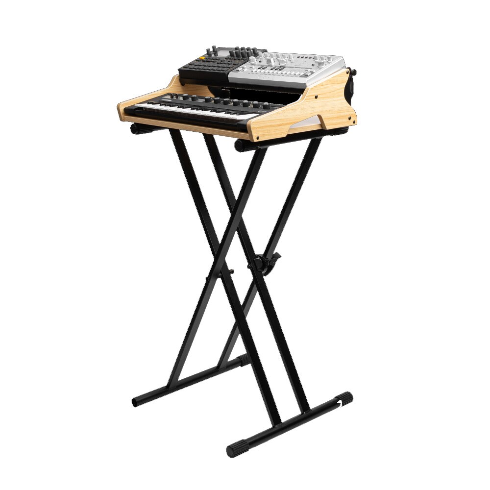 Frameworks Synth Oasis 32は、32鍵MIDIや各種デスクトップ機器を美しく安定して設置できるポータブルワークステーション。1Uラックや配線穴で整理も容易、専用バッグ付きで持ち運びも快適。