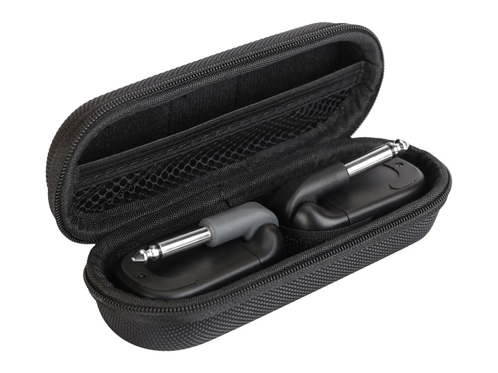 頑丈でコンパクトな専用キャリーケースが付属しており、トランスミッター、レシーバー、充電ケーブルをどこ へ行くにも安全に携行できます。