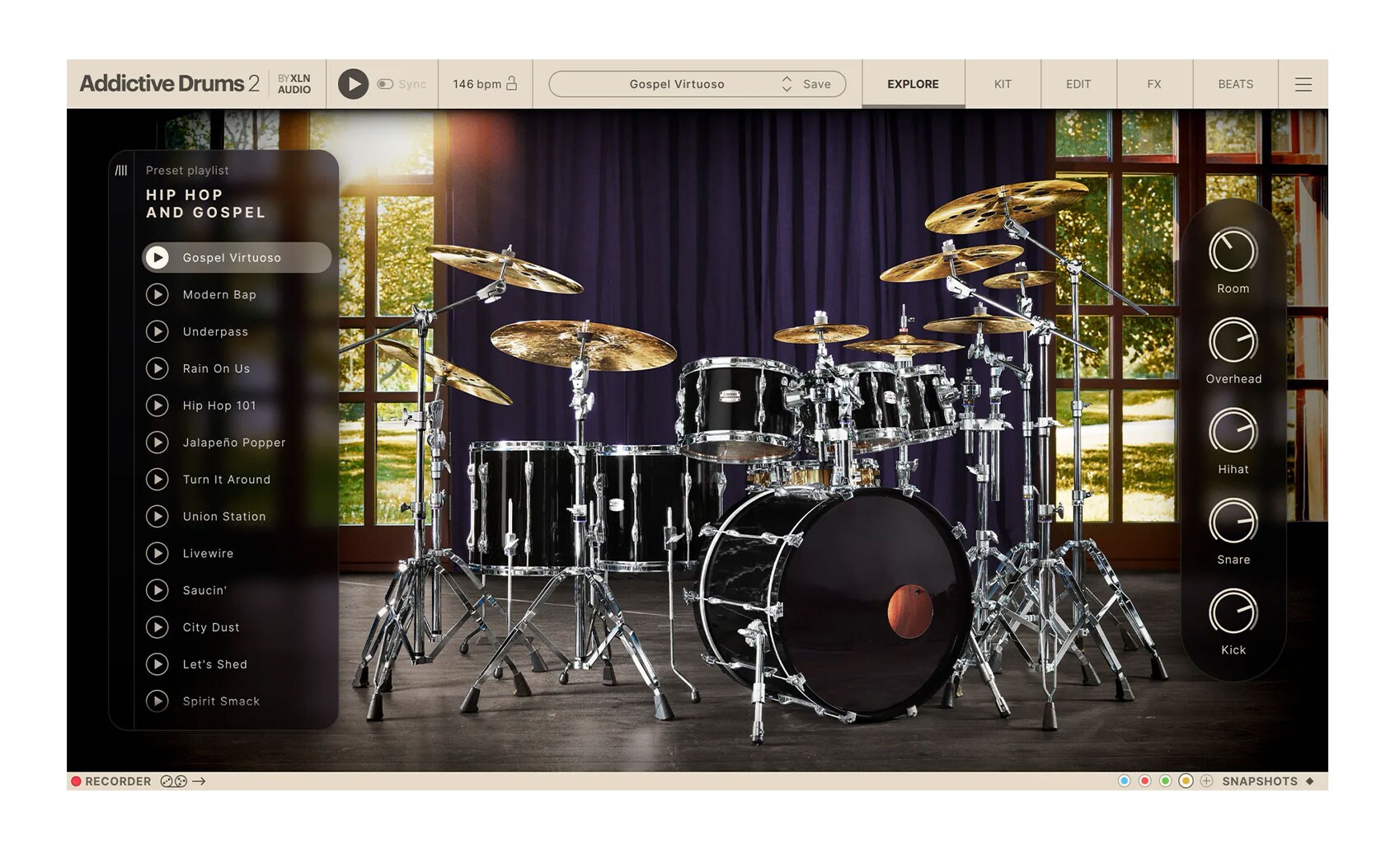 パンチ、明瞭さ、そして魂を兼ね備えた、ミックスにすぐ使えるドラム。ケンドリック・ラマーやJay-Zのようなパンチのある、ポケット感のあるヒップホップにも、カーク・フランクリンやタイ・トリベットのような巨匠たちにインスパイアされた爆発的なゴスペルにも、同様に適しています。