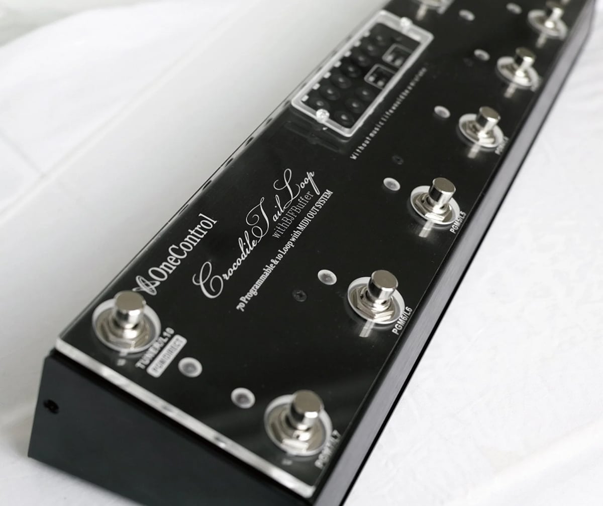 One Control Crocodile Tail Loop OC10は多くのプレイヤーからご愛用いただいており、実際のその耐久性は多くのペダルボードに於いて示されています。