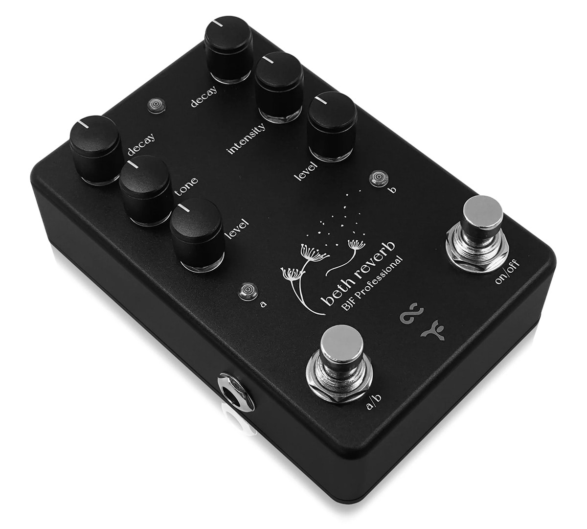 「Beth Reverb」はPRUSSIAN BLUE REVERBに新たなリバーブエフェクトを加え、2種類のリバーブをフットスイッチで切り替えることができます。そのため、楽曲によって求めるリバーブが異なる場合も、「Beth Reverb」なら1台で完結させることができます。