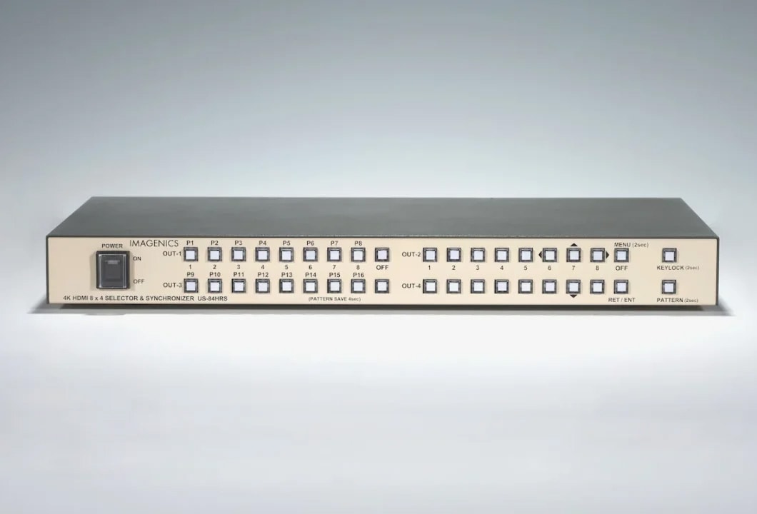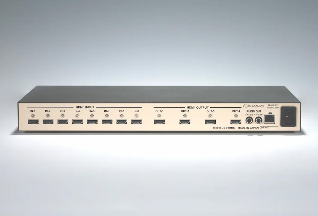 <<2026年1月発売!>>HDMI2.0/1.4およびHDCP2.2/1.4規格に準拠した4KHDMI信号の各出力FS付き8x4マトリックス型セレクター。全出力に個別のフレームシンクロナイザーを装備しています。