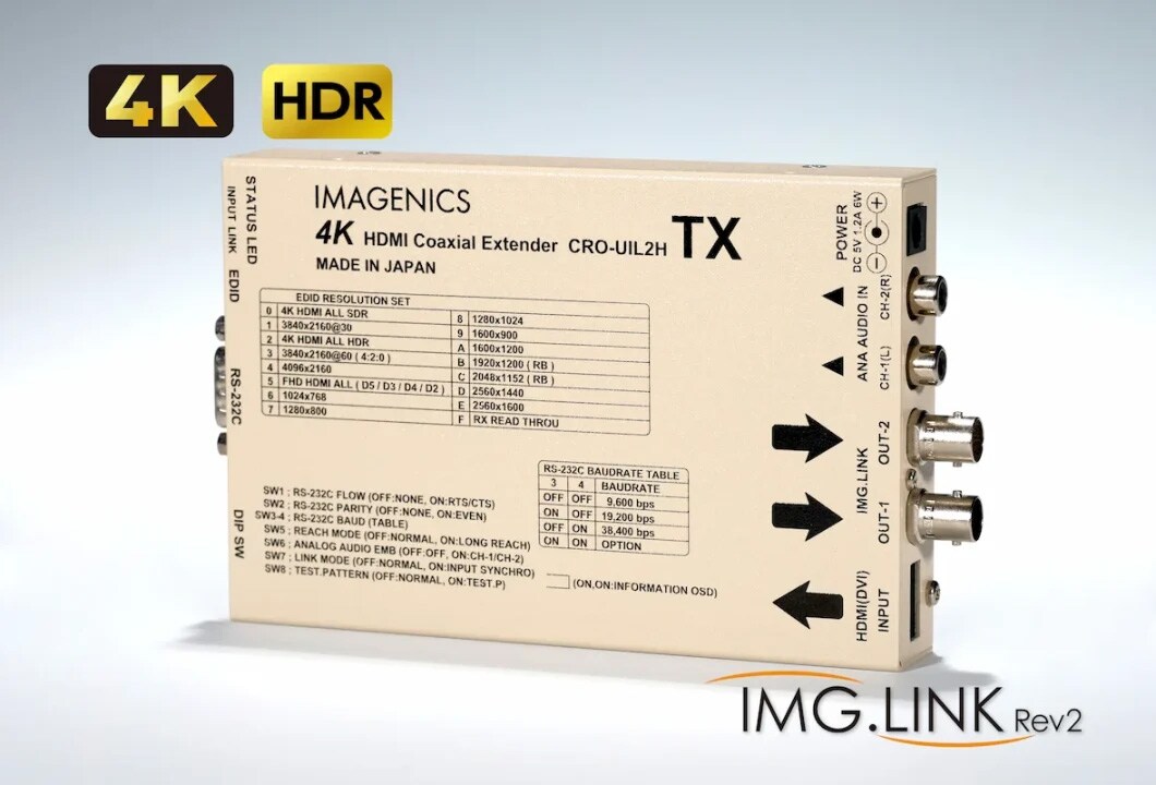 <<2025年11月発売!>>IMG.LINK信号伝送器のHDMI送信器。IMG.LINKRev2規格に対応しており、HDMI2.0/HDCP2.2の4K@60の444カラー映像伝送に対応します。