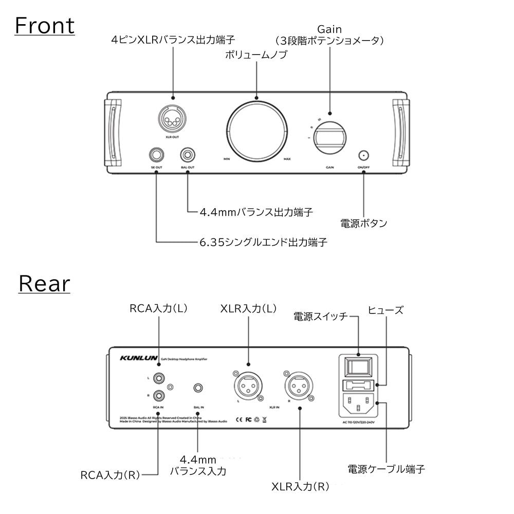 ・Kunlunの入力系統は、「XLR入力端子」、「RCA入力端子」、「4.4mmバランス入力端子」に対応しており、据え置き機からポータブル機まで幅広いオーディオ機器とのマッチングを実現します。純粋なアナログオーディオ設計を採用しているKunlunは、接続時にドライバーのインストールや複雑な設定は不要です。