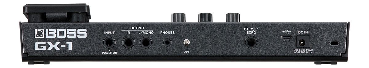 納得のいくサウンドができたらGX-1とともにステージへと上り、柔軟なコントロール性能を用いてパフォーマンスしましょう。3つのフットスイッチとエクスプレッション・ペダルは機能のカスタマイズに対応し、エフェクトのオン/オフから複数のパラメータを同時に変更するといった高度な操作まで、自由に割り当て可能です。さらに、CTL 端子またはBluetooth🄬を用いたワイヤレスで別売りのコントローラーを接続することで、いっそう多くの機能をコントロールできます。また、GX-1 は電池、AC アダプター、USBの3 電源方式を採用しているため、練習や演奏の場を選びません。