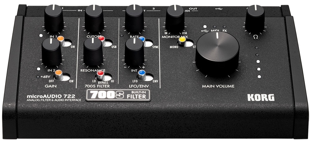 microAUDIO 722は、オーディオインターフェイスにコルグの伝説的アナログ・フィルターを搭載したハイブリッドモデル。インターフェイスと楽器の境界を曖昧にする、表情豊かなサウンドを生み出し、デジタル処理だけでは得られない音作りの可能性を提供します。