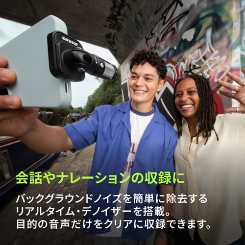 録音を邪魔したり台無しにしてしまう厄介なバックグラウンドノイズとはお別れしましょう。MOTIV VideoやMOTIV Audioアプリで設定可能な強力なDSPであるリアルタイム・デノイザーを活用すれば、煩わしいバックグラウンドノイズを簡単に除去できます。特に会話やナレーションの録音に威力を発揮し、あなたの声を録音の中心に引き立たせます。さまざまな場所で移動しながら録音する際に最適です。