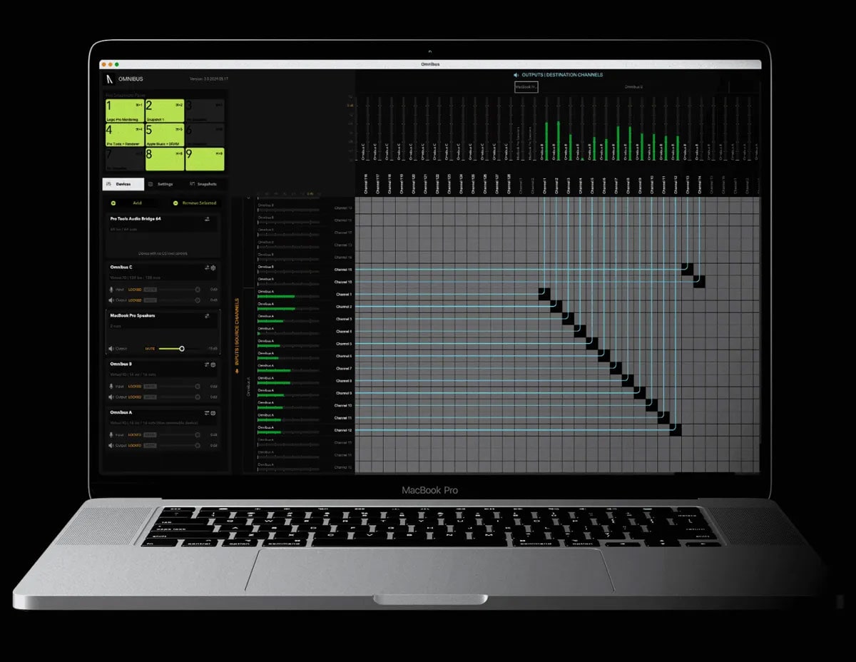 ・OMNIBUSは接続したいデバイス間を単純にクリックするだけで設定できる、非常に簡単なルーティングマトリクスを搭載