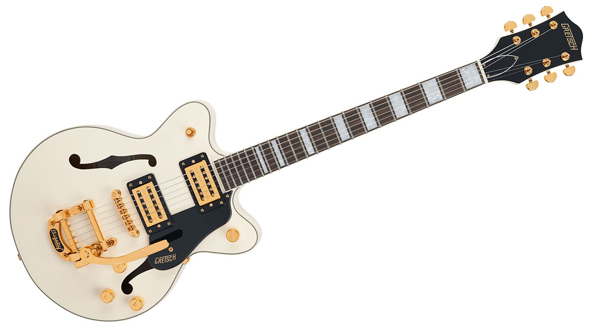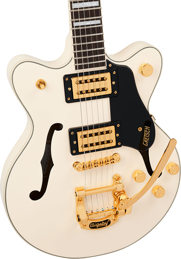 Limited Edition G2655TG Streamliner Center Block Jr. Double-Cut with Bigsbyは、パワフルなサウンドとGretschならではのスタイリングをよりコンパクトなサイズに収め、現代に甦らせました。