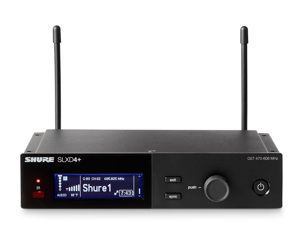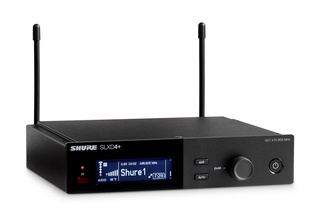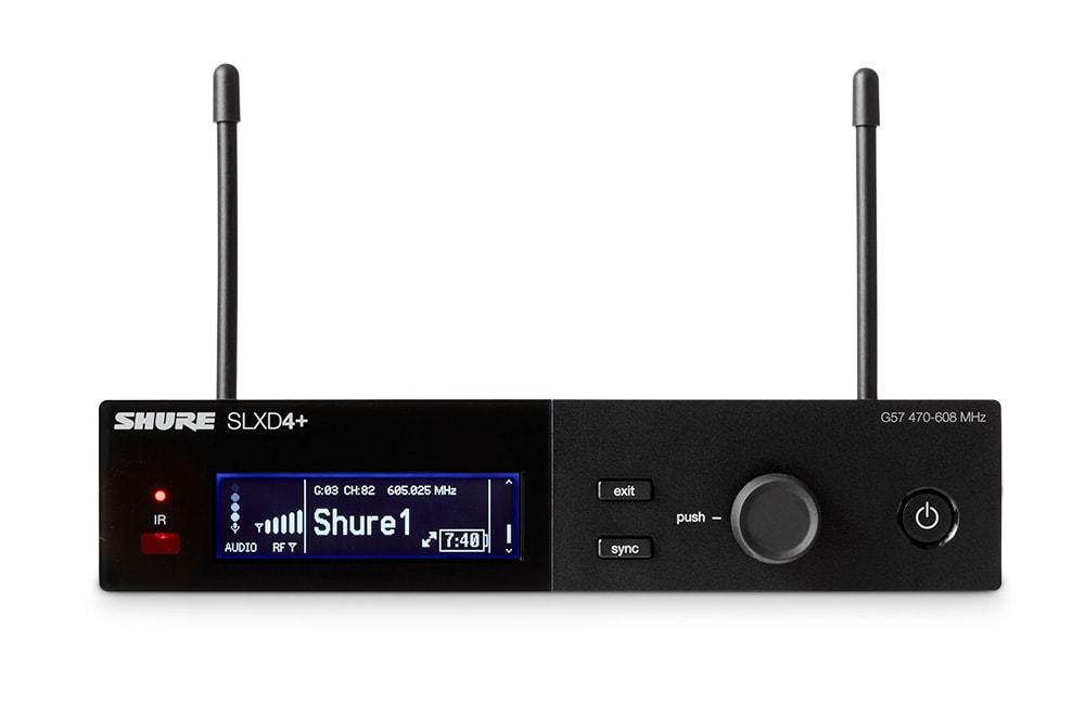・特許取得済みのShure Digital Feedback Reducer(DFR)を全SLX-D+受信機に搭載。万一発生する不要なハウリングを自動的に低減します。