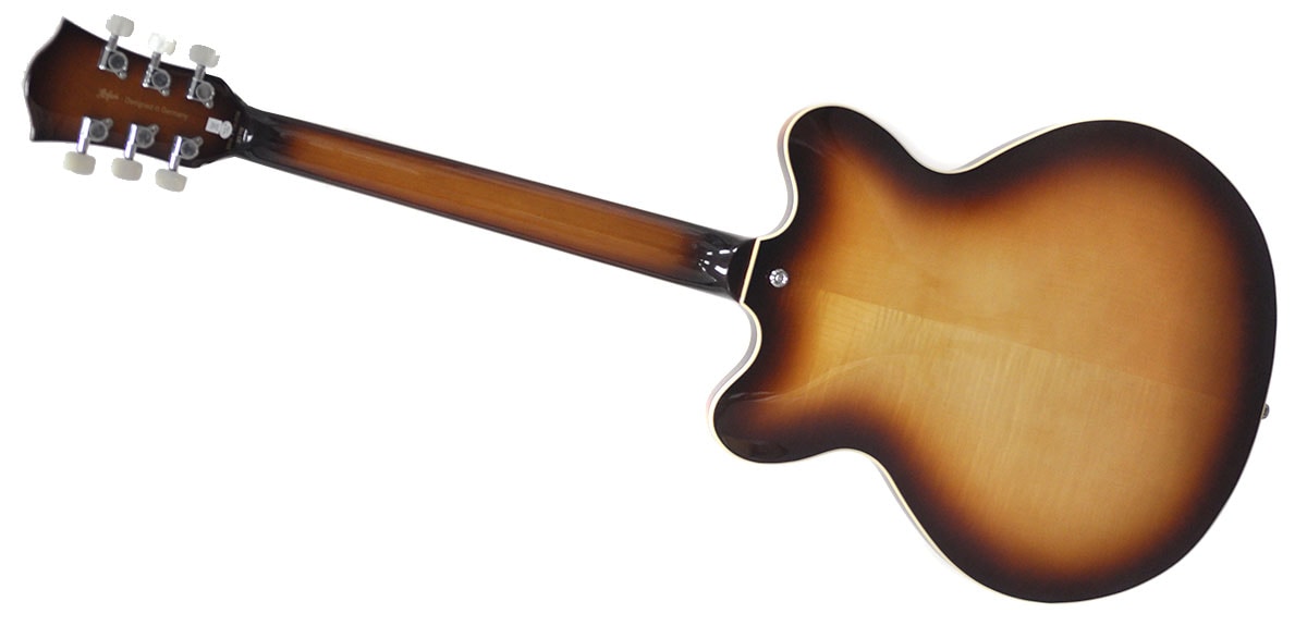 Verythin CT Specialは、ヴィンテージスタイルとモダンなデザイン要素を融合させたギターです。最も印象的なのは、1960年代のHofnerクラシックデザインである「バットウィング」サウンドホールで、このギターはHofner独特のレトロな外観を醸し出しています。