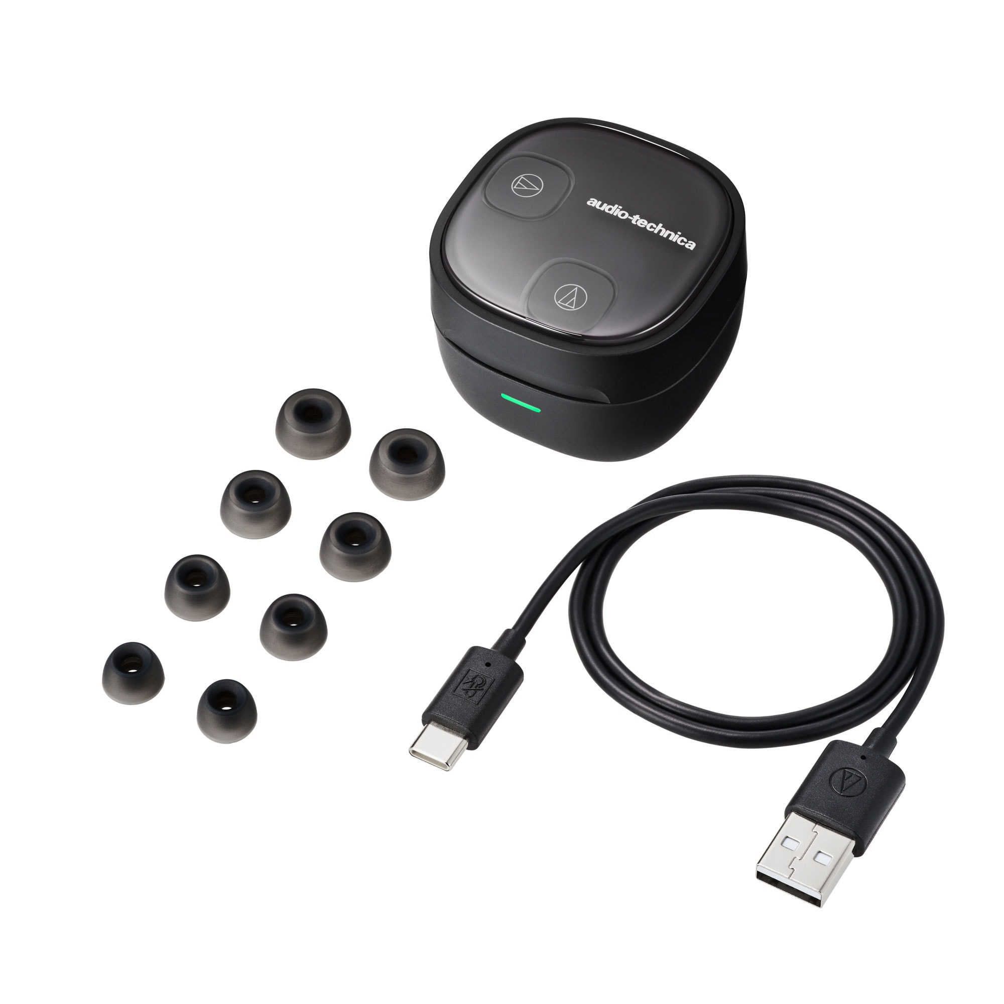 ・付属品:充電用 USB ケーブル(50cm、USB Type-A/USB Type-C)、イヤピース(XS / S / M / L)