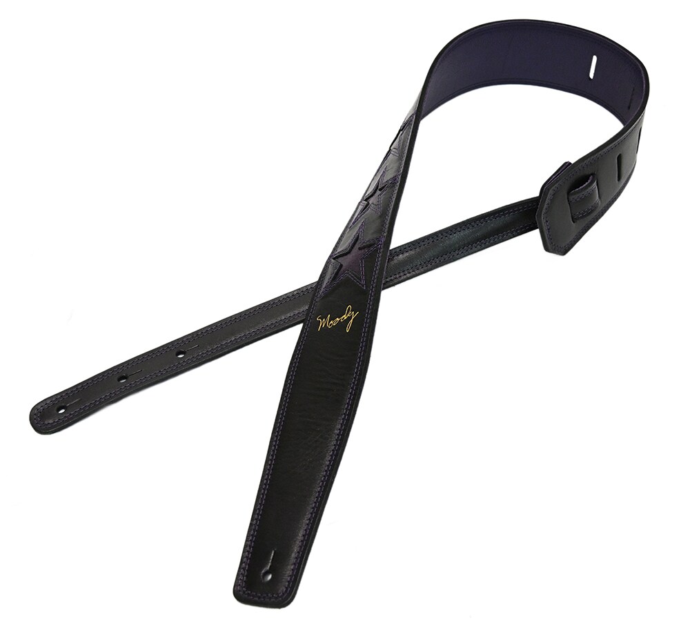 • MOODY STRAPS ( ムーディーストラップ )  / 2.5" 3 STAR LEATHER BACKED STRAP - Black/Purple & 3 STARS画像1
