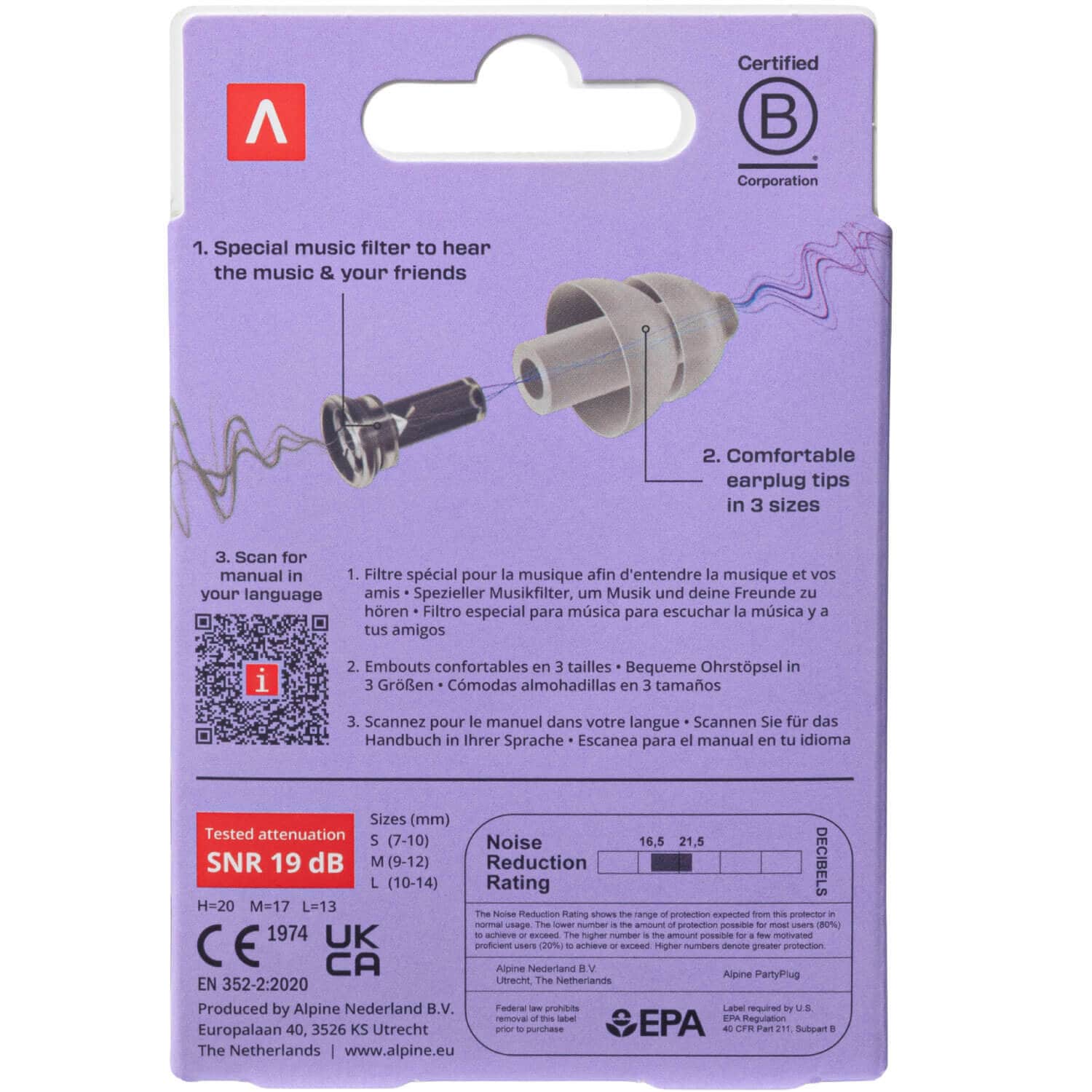 Alpine PartyPlugは、音楽愛好者やフェス・コンサート鑑賞者のために設計されたイヤープラグです。音楽や会話をクリアに楽しみながら、有害な騒音を19dB低減する、音楽鑑賞に最適化されたフィルターを搭載しています。S/M/Lの3サイズのイヤーチップにより、快適でしっかりとフィット。丈夫でコンパクトなキャリングケース付きで、どこへでも持ち運べます。