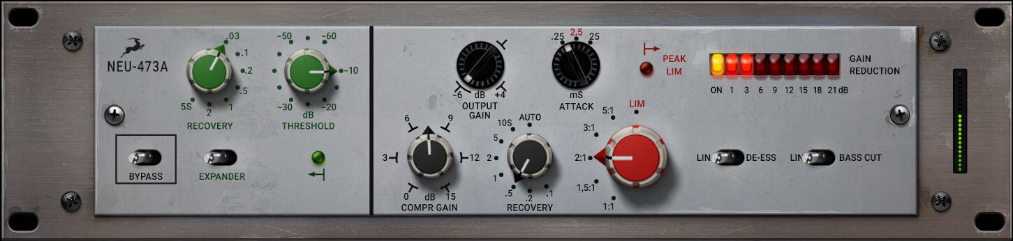 U473Aは、レコードカッティング用のダイナミックコントロールツールとして開発され、中音域に重点を置いて設計されました。マスタリング、放送、レコードカッティングなどの現場での使用を想定して開発されたこのユニークなVCAコンプレッサーは、そのアグレッシブなトランジェント捕捉能力と中音域の前面性から、ドイツのレコーディング&ミキシングコンソールにも採用されました。そして今日、U473Aを忠実に再現したこのコンプレッサーは、ミックスにおいて中音域を前面に押し出す必要がある、レコード制作プロセスのあらゆる段階で最適なトーンとダイナミクスの調整ツールとなります。