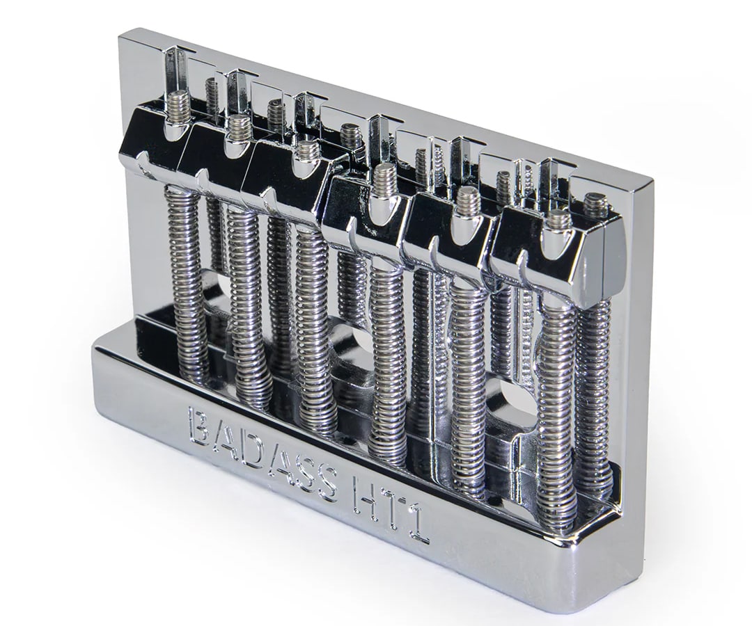 80年代を通じて、BC Rich、Spector、Kramerといったブランドが純正パーツとしてBadassブリッジを採用し、アーティストからの信頼はさらに高まりました。今日、Badassはギターやベースのトーン、演奏性、ルックスを向上させる高品質な交換用ハードウェアの世界基準として知られています。