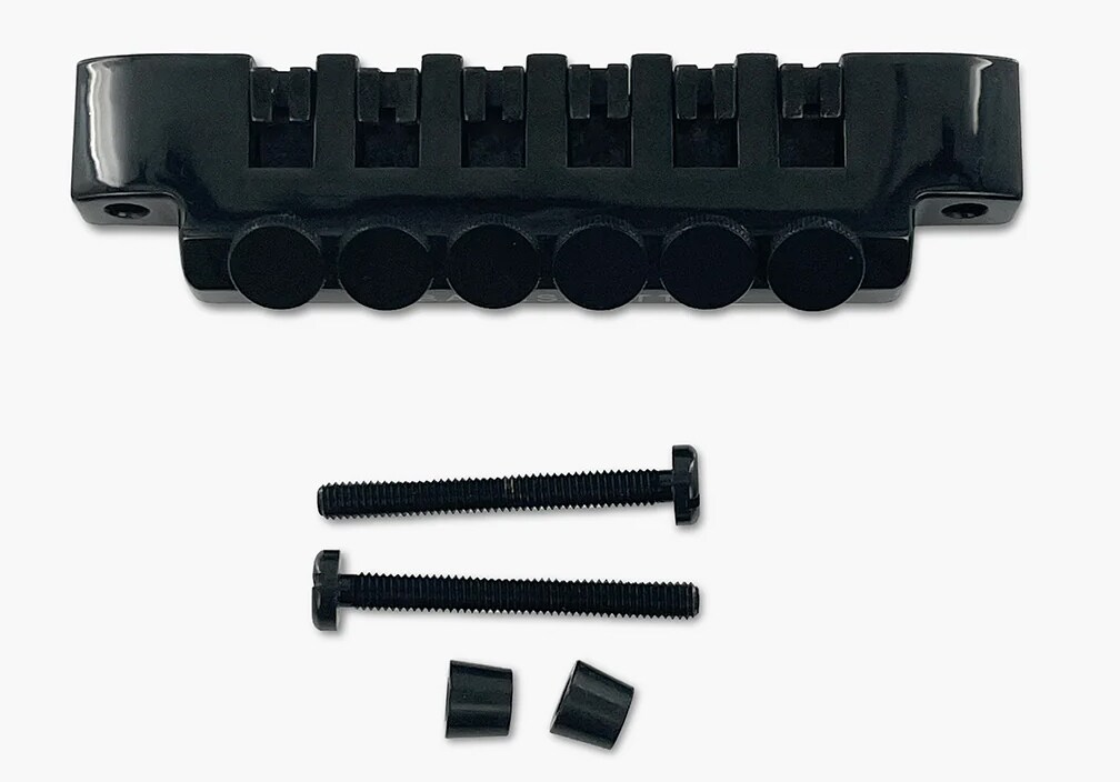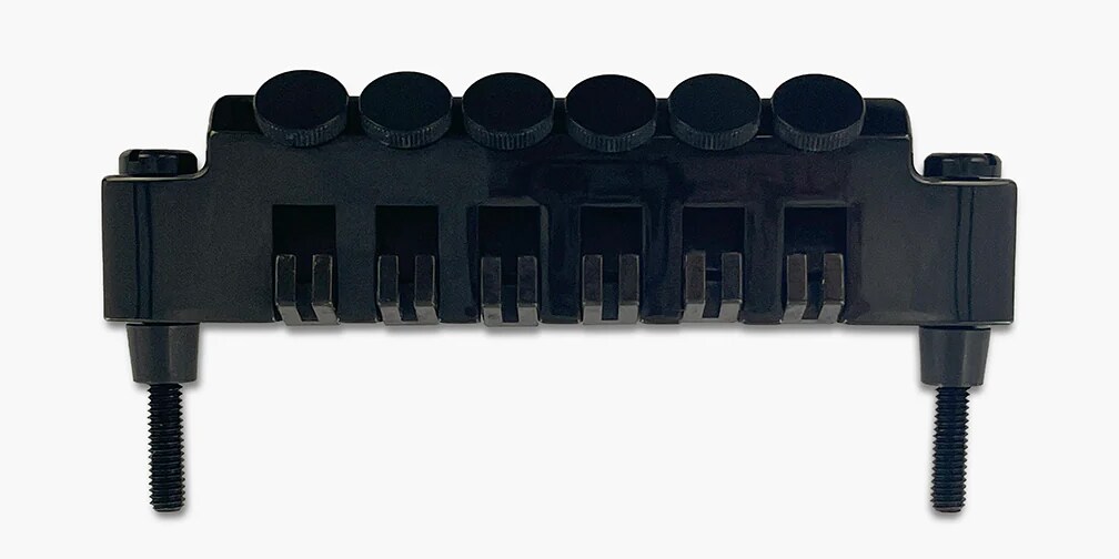 高密度な亜鉛合金から製造されており、アタック、サステイン、音の明瞭度を向上させます。当初はGibsonの「ラップアラウンド」ブリッジの直接交換品として設計されましたが、弦ごとの正確なオクターブ調整(イントネーション)を可能にしたことで、瞬く間に有名になりました。