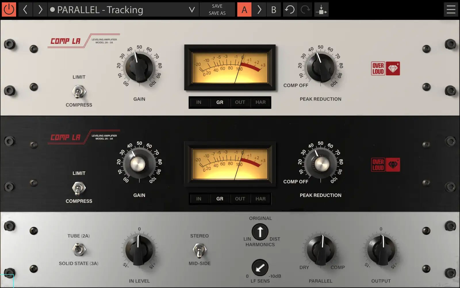 Overloud Comp LAは、伝説的な2つのオプティカルコンプレッサーを1つのプラグインに統合した革新的なシミュレーションです。2Aバージョンは真空管ベースで、より温かみがあり倍音豊かなトーンを実現します。3Aバージョンはソリッドステートベースで、より速いアタックとクリーンなトーンを実現します。