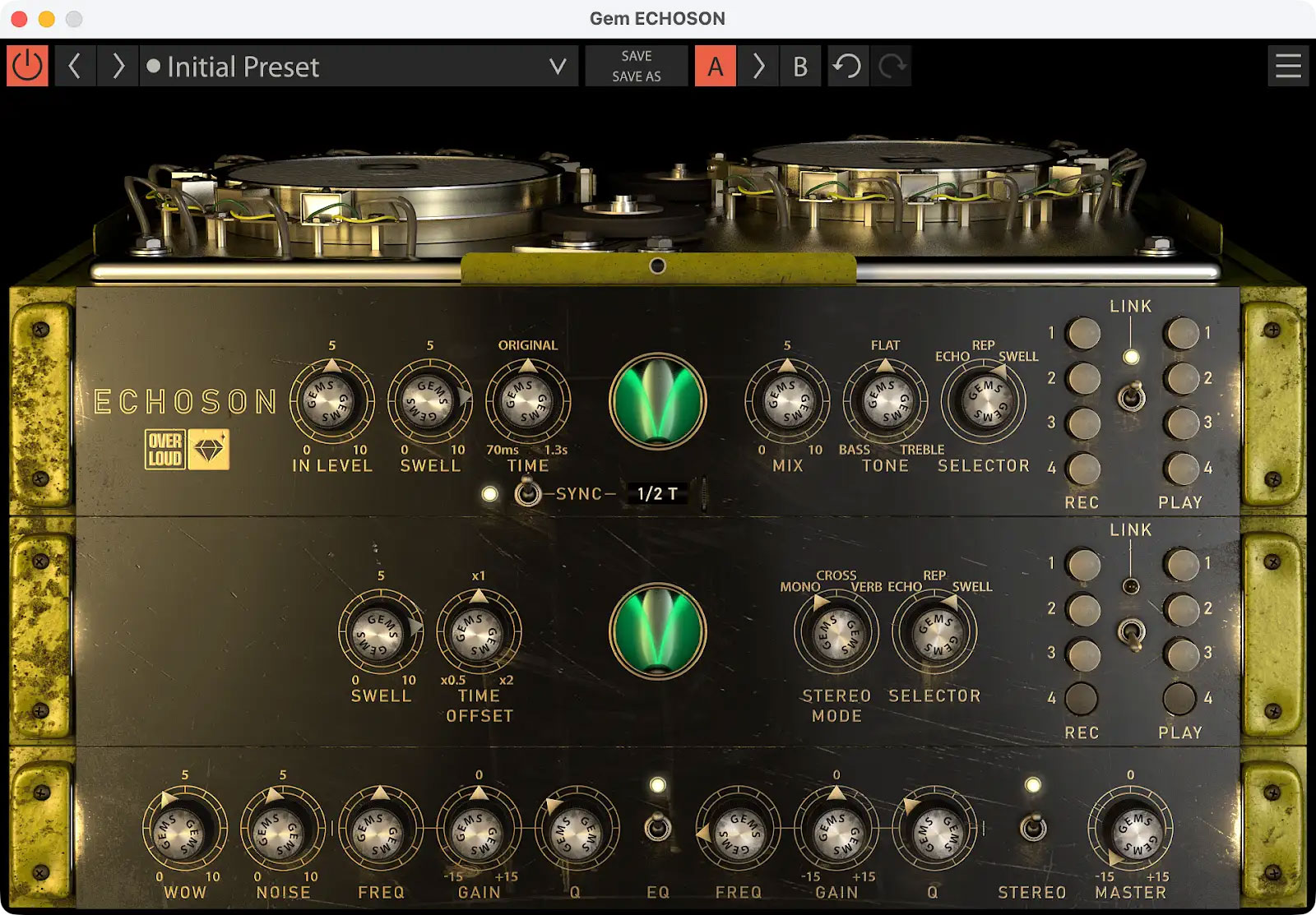 ECHOSONは、伝説的なイタリア製マグネティック・ドラム・ディレイ・ユニットをOverloudが再現したものです。その独特なトーンは、70年代のピンク・フロイド・サウンドを象徴するものでした。