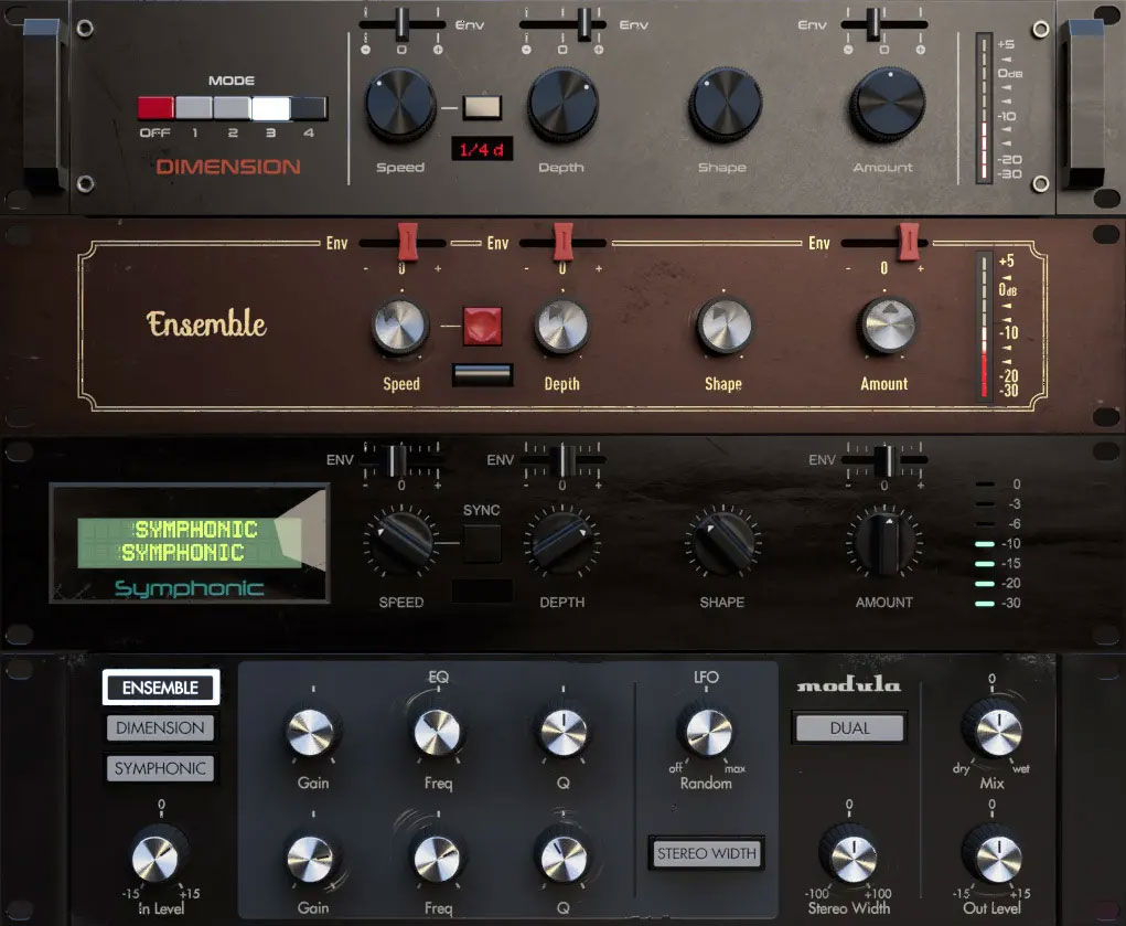 Gem MODULAは、最も象徴的なモジュレーションユニット3つを1つのプラグインに収録しています。現在入手可能な最も忠実なエミュレーションに加え、アナログユニットにはない多くの機能を追加することで、オリジナルのトーンの可能性をさらに拡張します。
