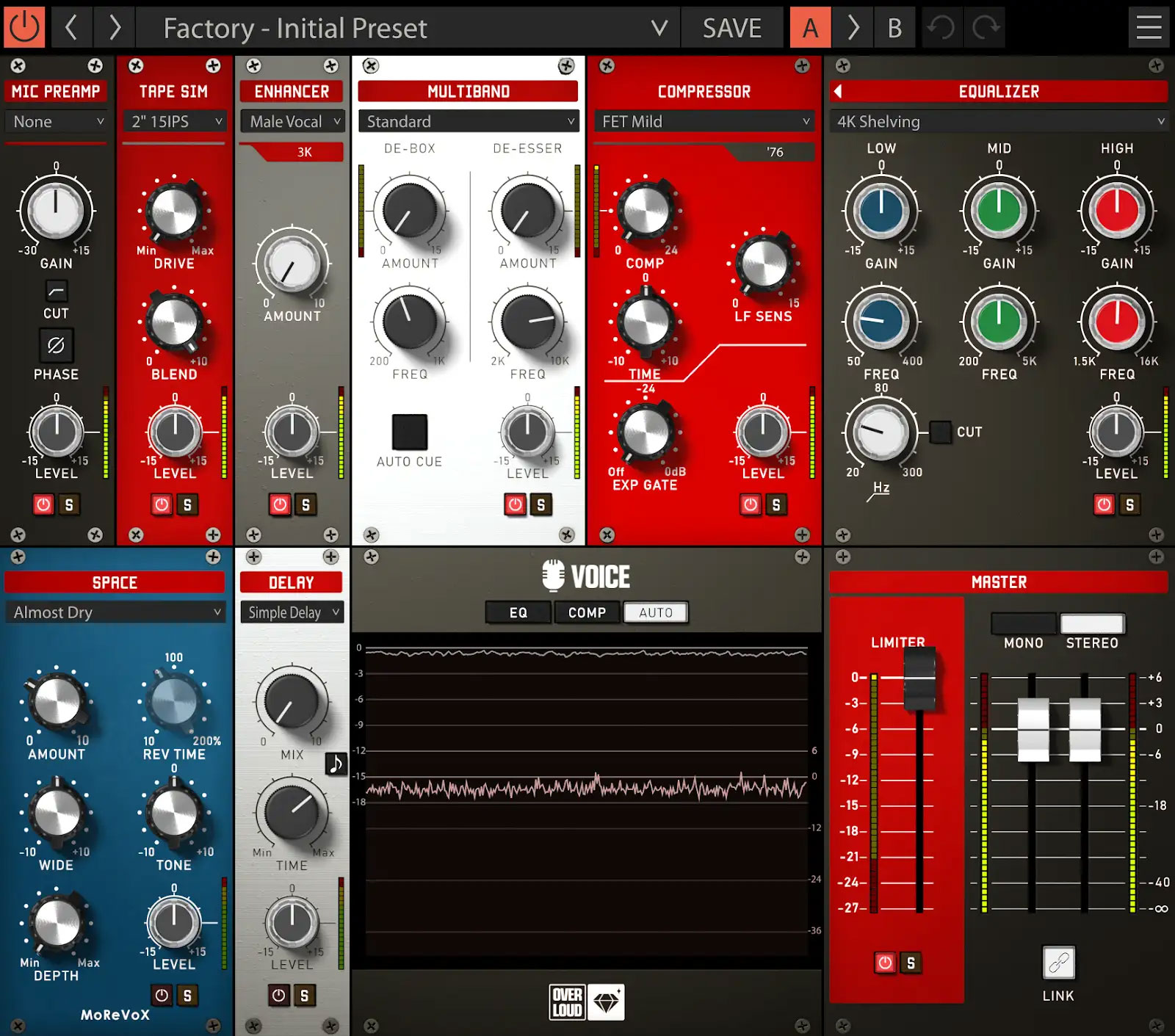 VOICEは、ボーカル処理用に設計された新しいGemプラグインです。VOICE は、アナログプロセッサーをベースにした包括的で合理化されたボーカル制作ワークフローを提供します。