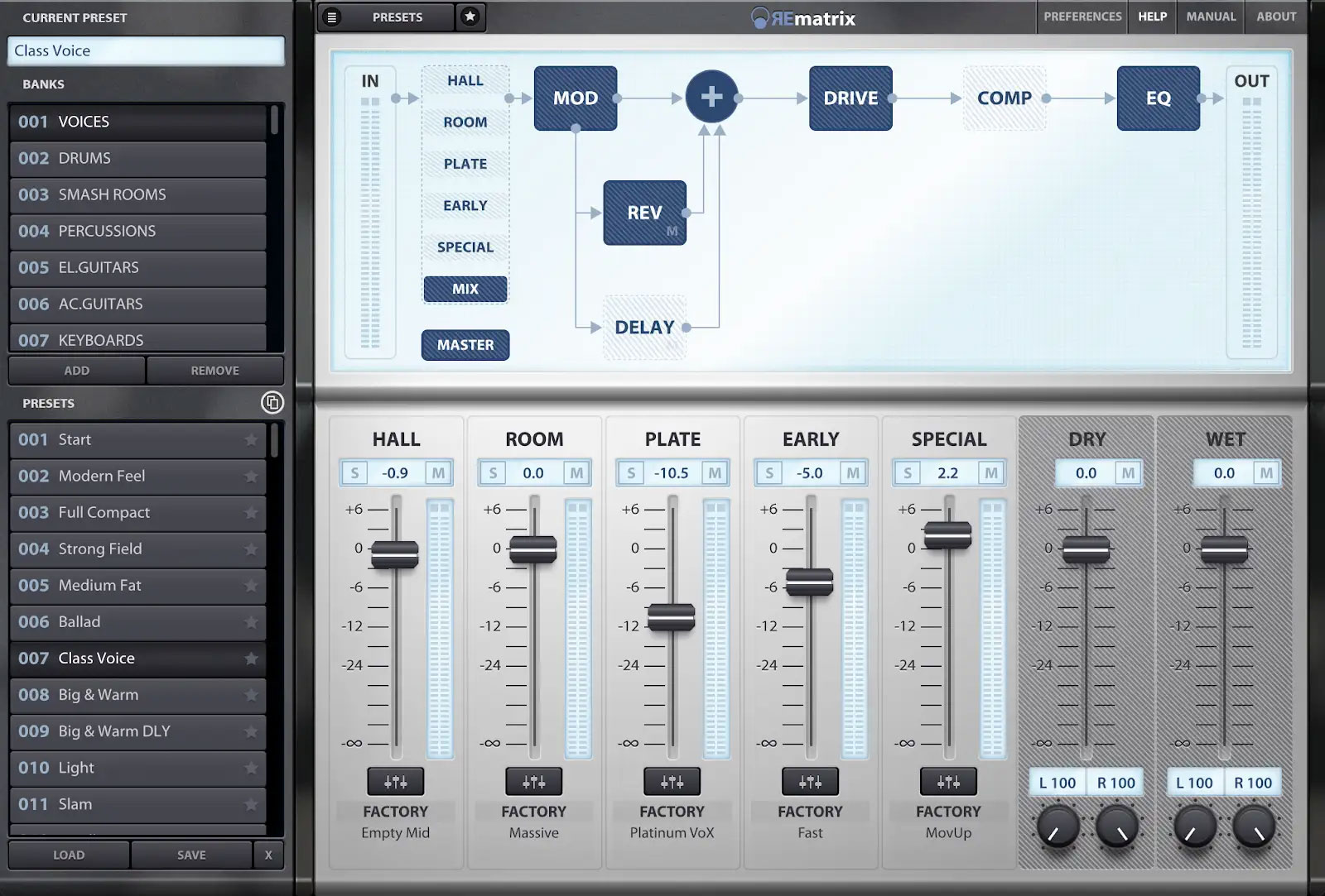 高品質なファクトリーライブラリ(定評のあるMoReVoXライブラリをベースとしています)を使用するか、独自のカスタムライブラリを使用するかに関わらず、REmatrixは全く新しい視点でリバーブにアプローチし、ユニークで比類のないテクスチャーを作り出すことができます。