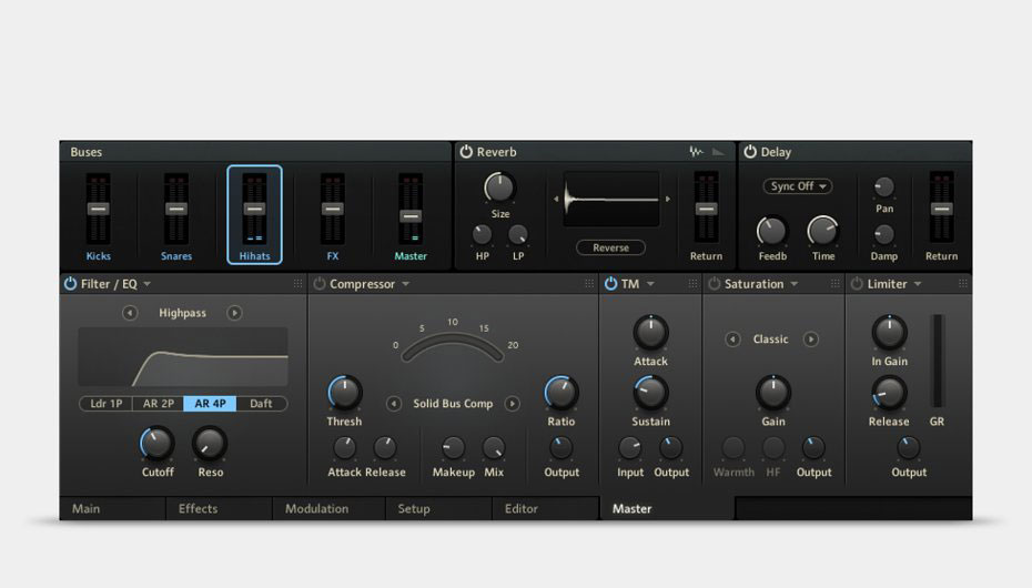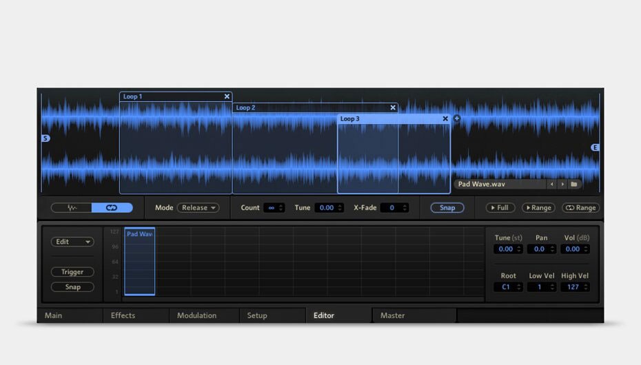 サンプルを効果的に使いこなすことは簡単ではありません。 クラシック・サンプラーやグルーヴボックス・エミュレーターを含む7つのサンプルモードが、あなたに特別なサウンドのバリエーションを提供します。 Time Machine Proアルゴリズムにより比類なきタイムストレッチが可能になります。 ゴージャスな波形ディスプレイは、スタート・ポイントとエンド・ポイント、ボリューム・カーブなどが表示されます。 さらに簡易的なキットの構築とサウンド・デザインのための瞬時のセル・レンダリングを可能にします。