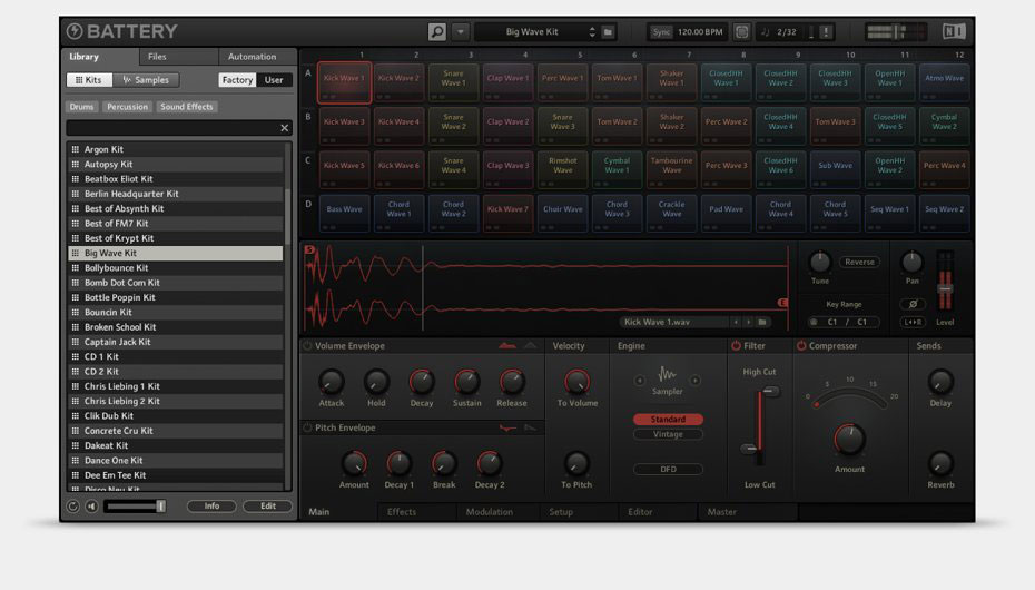 BATTERY 4は、アップデートされたライブラリと制作に集中するための非常に直感的なワークフローが組み合わされています。 クリアで強力なインターフェイスのBATTERY 4には、ドラム・サンプリングの未来があります。