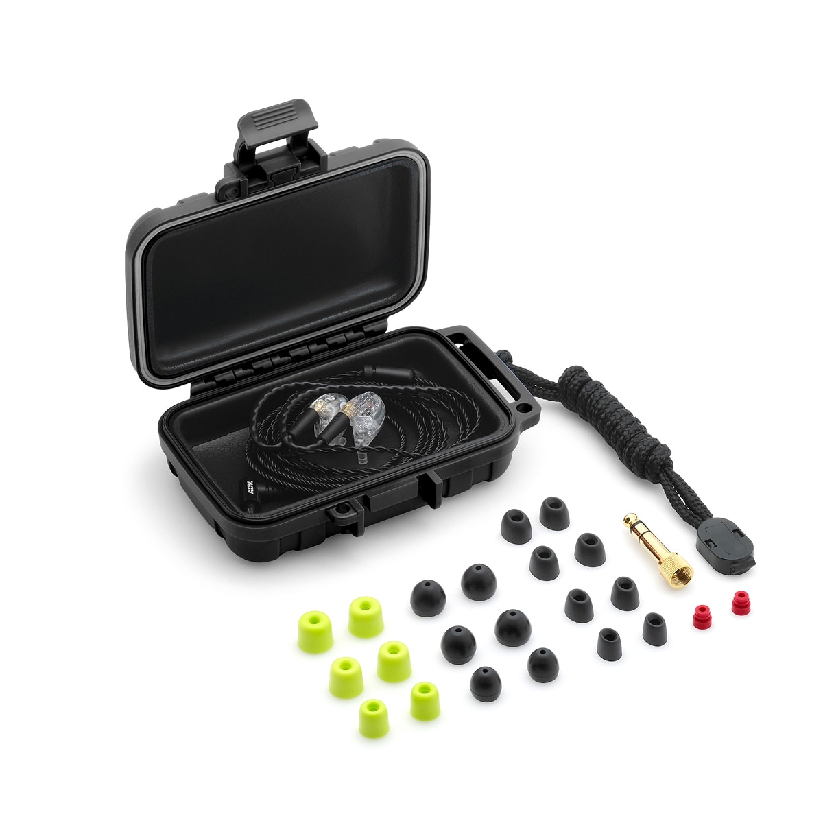・ 耳に自然とフィットする楕円形状の「Eartune Fidelity U」シリコンチップをはじめ、遮音性に優れたフォームタイプなど計10ペアのイヤーチップを同梱。個々の耳の形状に合わせて、最高のフィット感と音響特性を選択可能です。さらに衝撃に強いショックプルーフケースも付属し、持ち運びも安心です。