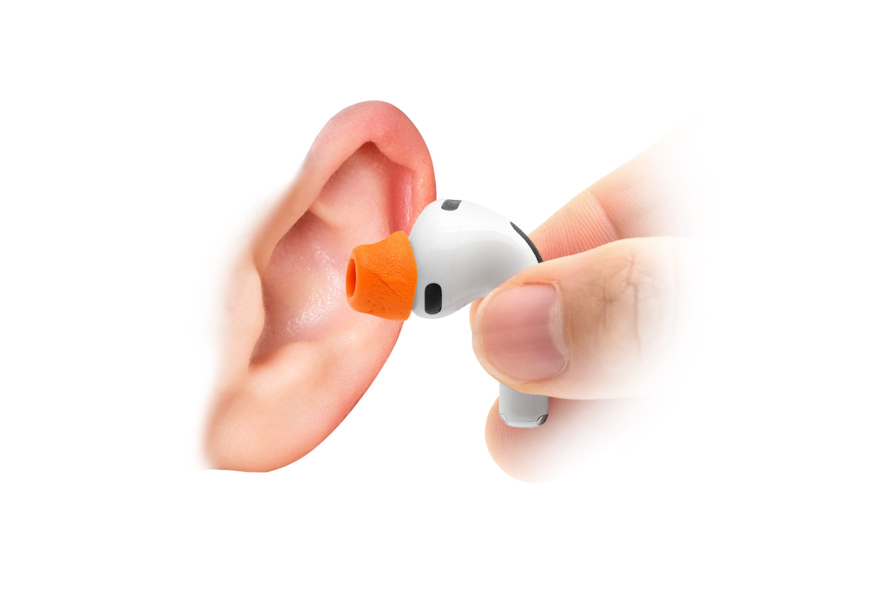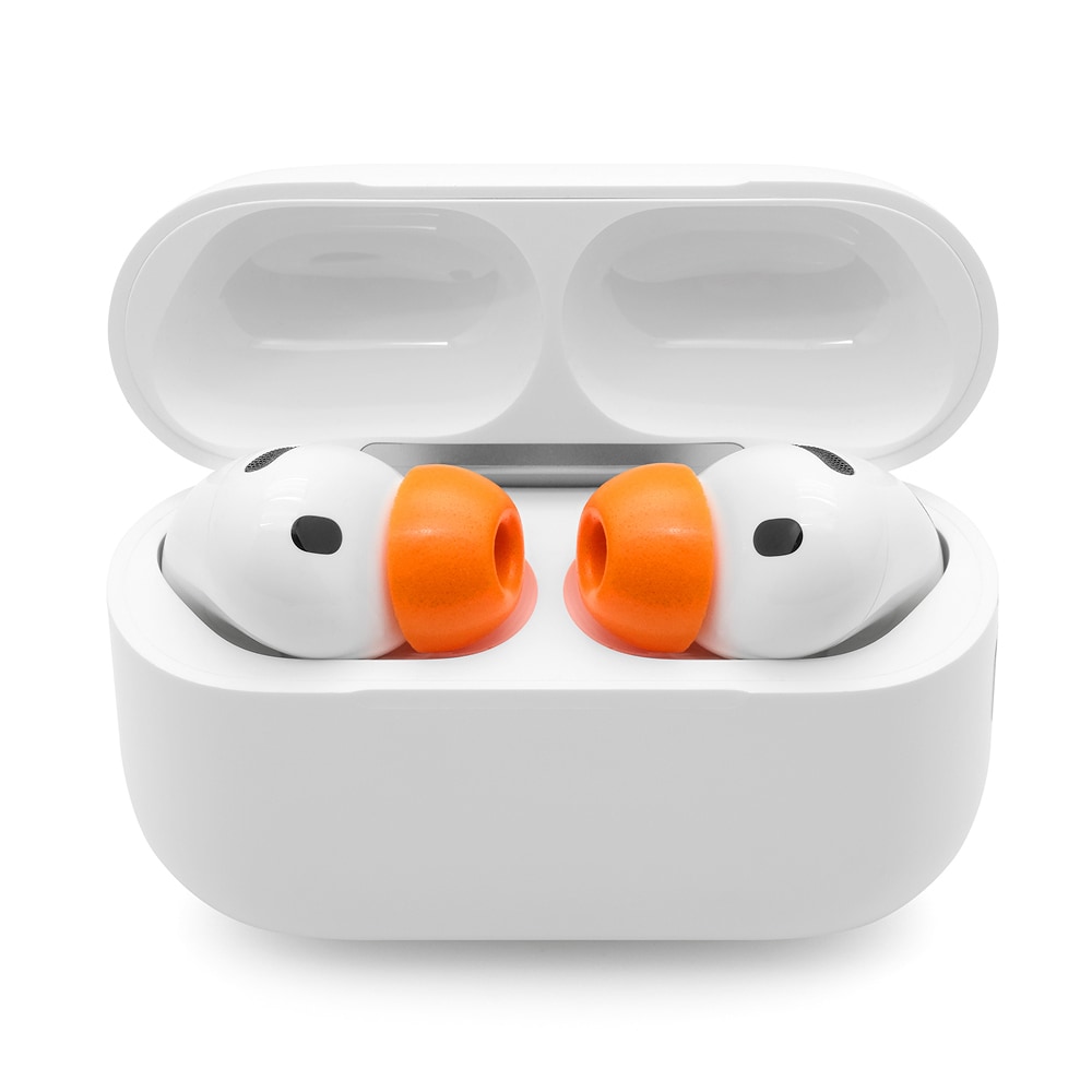 ・ 密度の高いフォーム素材を使用することで、耳内を隙間なく密閉し、高い遮音性を引き出します。この密閉性の向上により、AirPods Pro(第3世代)が持つ本来の音質性能を余すことなく発揮。さらにアクティブノイズキャンセリング(ANC)の効果も劇的に高まり、より深い静寂の中でのリスニングを可能にします。
