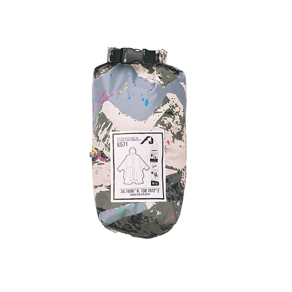 時には台風並みの大雨が降るフジロックから生まれた KiU の代表ポンチョをベースに、オリジナルデザインとリフレクタープリント、ネームをあしらいました。