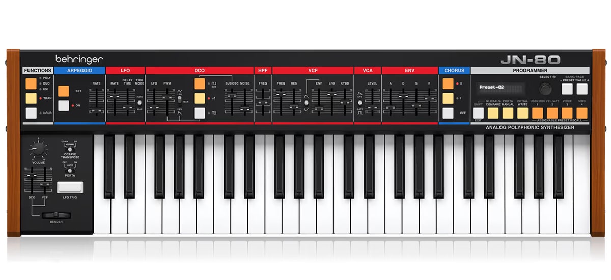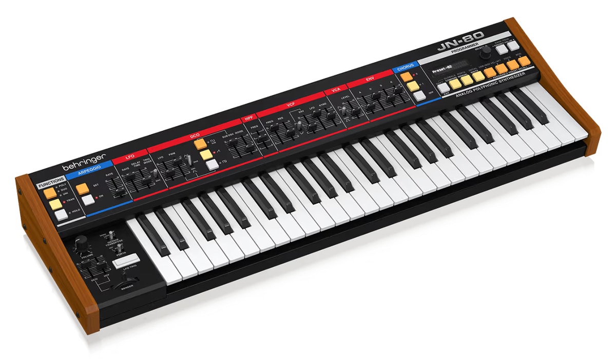 JN-80は、クラシックな8ボイス仕様を実現するプログラマブル・ポリフォニック・シンセサイザー。3109 VCFとBBDコーラスが、80年代の温かく厚みのあるトーンを現代に再現。49鍵・高機能で、スタジオにもライブにも最適な1台です。