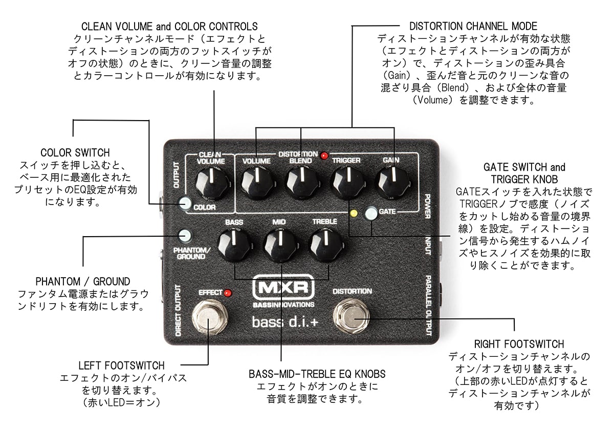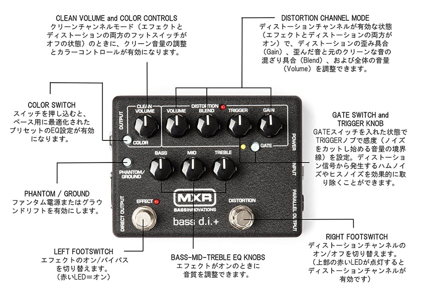 営業部 / 玉木昔から多くのベーシストに愛用されているプリアンプ。独立したディストーション・チャンネルや、即座にドンシャリサウンドに切り替えられるCOLORスイッチを搭載し、多様なステージで活躍します。BLENDつまみを活用して原音と歪みのバランスを調整することができ、派手に歪ませても芯のあるベースサウンドを実現します。歪ませたときに気になるノイズは、GATEスイッチ(ノイズゲート)をONにすることで軽減されます。現代のベーシストが求める機能をしっかり詰め込んだ優秀なモデルです!