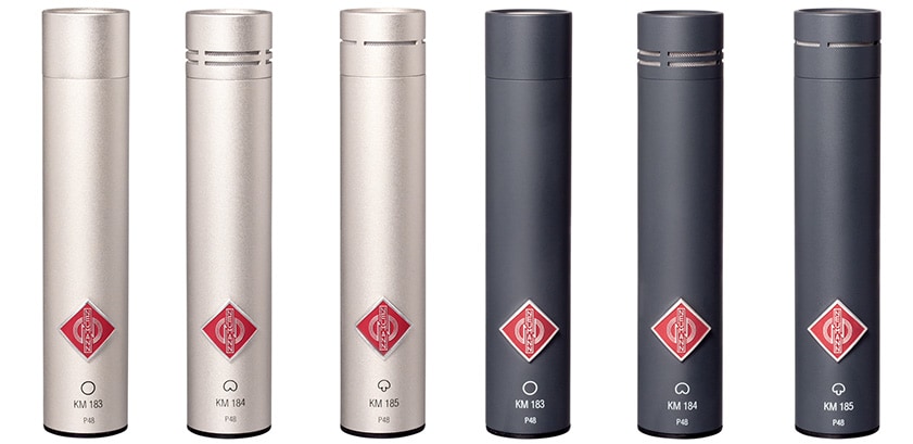 KM 183 / KM 184 / KM 185は”Neumann Series 180”にラインナップされ、その歴史は1950年代に発売された真空管回路のスモールダイヤフラムコンデンサーマイクKM 53 / KM 54まで遡ります。KMはドイツ語で「小さなマイク」を意味する“kleinmikrophon”から名付けられ、そのコンセプトは非常に小さなサイズに大型のマイク同様の性能を収めるというものでした。以降KM 63 / KM 64 / KM 65を経てFET回路のKM 83 / KM 84 / KM 85にリニューアル。今日のKM 183 / KM 184 / KM 185は1999年にリリースされ、いまなお録音現場で愛されています。”Neumann Series 180”は当時から変わらぬコンセプトを持つスムールダイヤフラムマイクシリーズです。