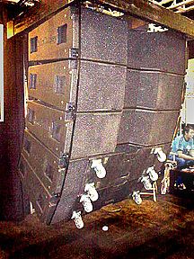 | 大規模なコンサート会場やスタジアムで見かけるスピーカーシステムも、こんなに近くで見る事ができます。McCauleyのMONARC MLA5です。普段は、遠くから見るばかりですが、目の前で見るとその大きさは圧巻です。 |
