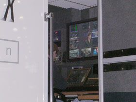 こちらは車の中にセットアップしてあるモービルシステム。中継車として使えるシステムを展示してありました。ここでも一括管理、グラフィック化が大きく進んでおり今までの中継車をイメージを一新するものでした。