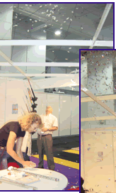 | 巨大なトラスシステムの上にムービングヘッドがズラリ勢ぞろい。その真下にあるコントローラーで自由に操ることができます。前に立ったら、上を見たり、下を見たりと皆忙しそう。 |
