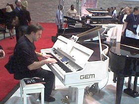 最も注目を集めたのは、Promega3。デモ演奏には沢山の人達が集まり、その美しい音色に耳を傾けていました。 Promega3は2系統のエフェクターと4音色を重ねて発音する新しいコンセプトのデジタルピアノです。4音色はそれぞれボリューム調節が可能で、全体のバランスをとり、エフェクターのON/OFFがそれぞれチャンネルごとにON/OFF可能が可能です。高性能、高品位という印象が強かったです。また、何よりこのキーボードは圧倒的に操作が簡単ということがいえるでしょう。とても使いやすく、すぐにでもすばらしいサウンドを作り出せるキーボードです。