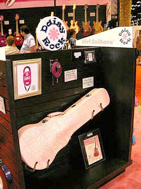 こちらはDAISY ROCKのキュートなギター達。ケースまでピンクのラメラメです。女の子専用、と言うわけではないでしょうが、キュートなブロンドガールや本格派のドラッグ・クイーンにも似合いそうです。