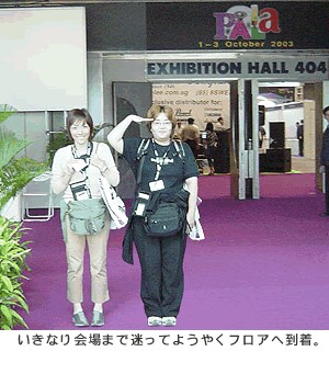 | こちらは海外も音響知識も初心者の増田&木。不安いっぱいでようやくたどり着いた会場にて歓喜のポーズ。受付で片言英語を駆使してIDカードをもらって会場へ・・・ところが受付で言われたフロアがすぐに分からず早速迷ってしまうあたり前途多難ですが、とにかくこれからショーをじっくり観覧してきます ! |