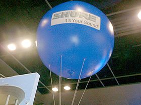 SHUREでは大きな風船がお出迎え。「It' Your Sound」、あなたの音楽というだけありアジアでも大きな販売展開をしており、会場の良い場所に広いブースを展開していました。
