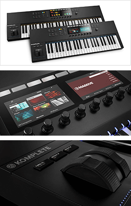 パソコン内の音源を操作することができる鍵盤型のコントローラーです。『KOMPLETE KONTROL S-SERIES MK2』は、2つの高解像度カラーディスプレイが新たに搭載されたことで、サウンドを可視化、ノブを使ったパラメーターの微調整などが、パソコン画面を見ることなくキーボード上で完結できるようになりました。さらに、最先端の音楽制作パッケージであるKOMPLETE 11の中から2,500以上ものサウンドを厳選し収録した「KOMPLETE SELECT」が付属しており、すぐに音楽制作を始められます。